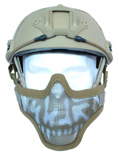 The mask is attached via 2 side clips and 2 elastics on the back in Velcro.