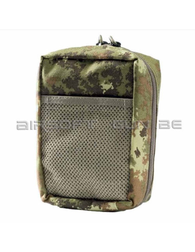 MULTILAND DEFCON5. Made of nylon 1000 denier, this pouch is intended to receive many medical or other accessories, there are inside small equipment storage systems. Its closure system is made by double zip only on half the pouch. It is equipped with MOLLE® sysem facade and equipped with back-mounted legs, it can be attached to vest or backpack. Size 19x16x3 cm approx.