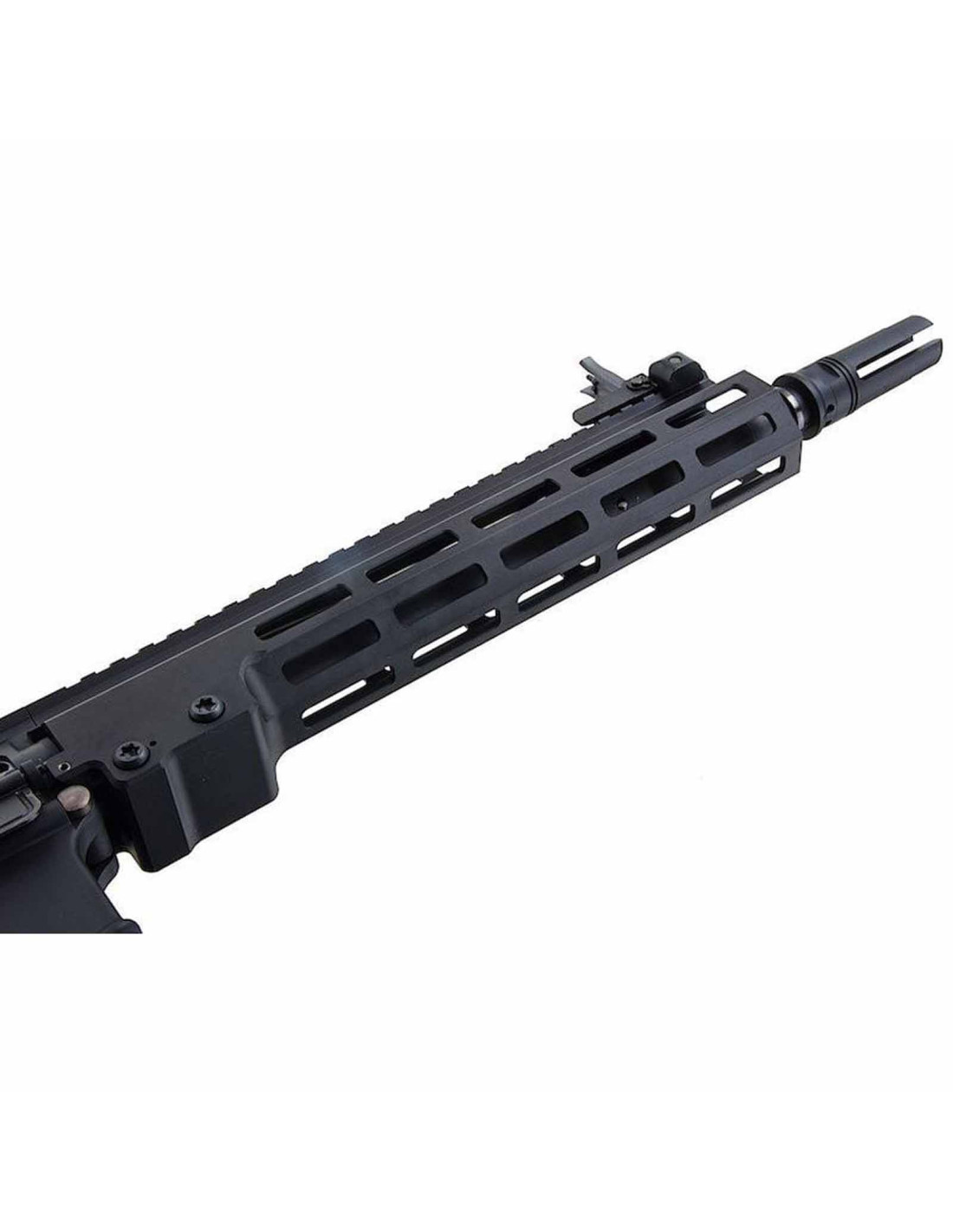 The platform follows the SOPMOD Block 3 spirit, pairing a long top rail with an M-LOK handguard profile inspired by the MK16 style. This gives you a clean, streamlined front end and lets you mount accessories only where you need them. The Black finish stays understated and matches most loadouts, from indoor CQB to outdoor woodland.