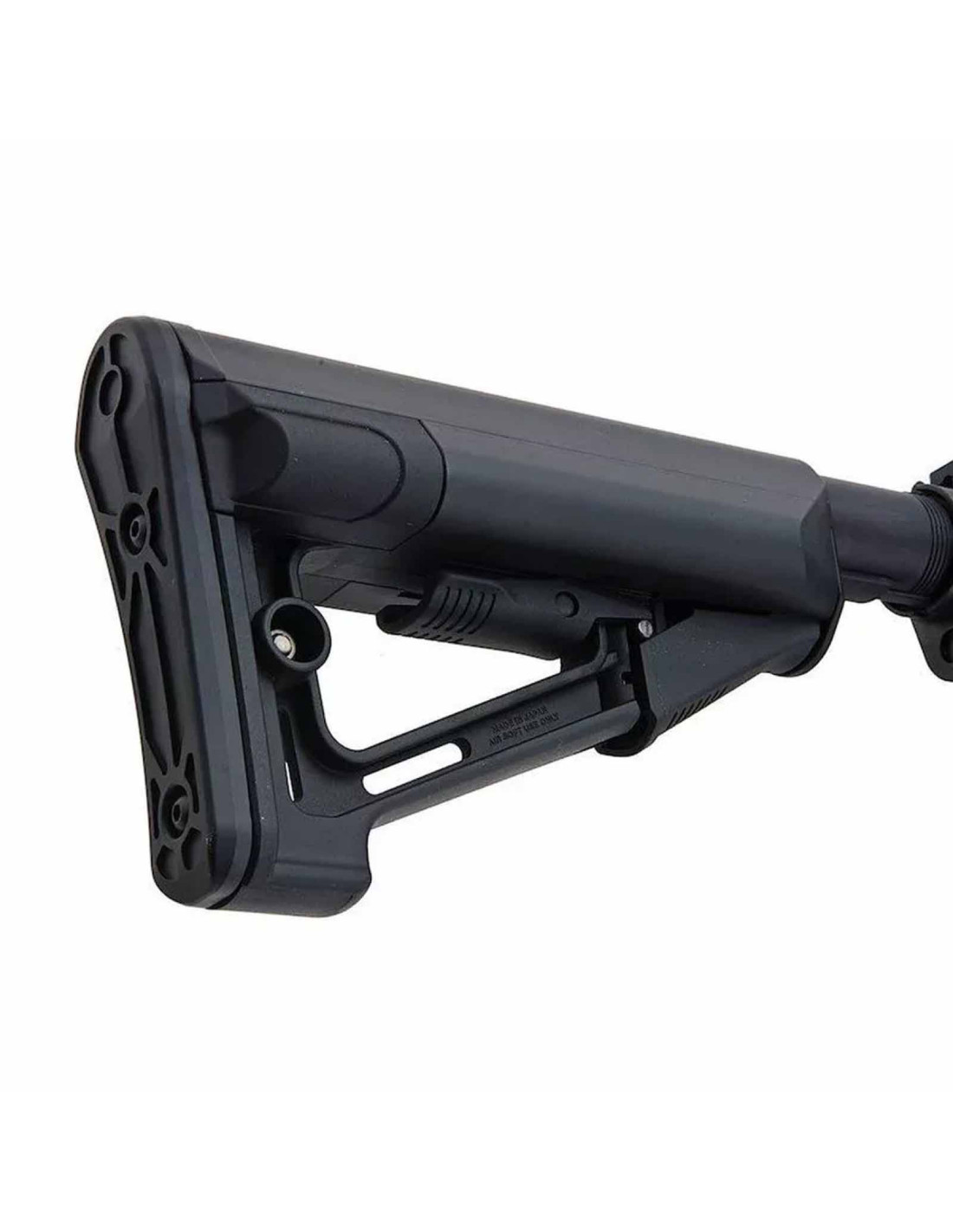 The STR type stock adjusts through multiple positions to fine tune length of pull. It is designed to accept a SOPMOD battery setup; for best results, use the recommended 8.4V NiMH 1300mAh SOPMOD battery (availability and local rules may vary). This keeps the wiring tidy and preserves the rifle’s balance.