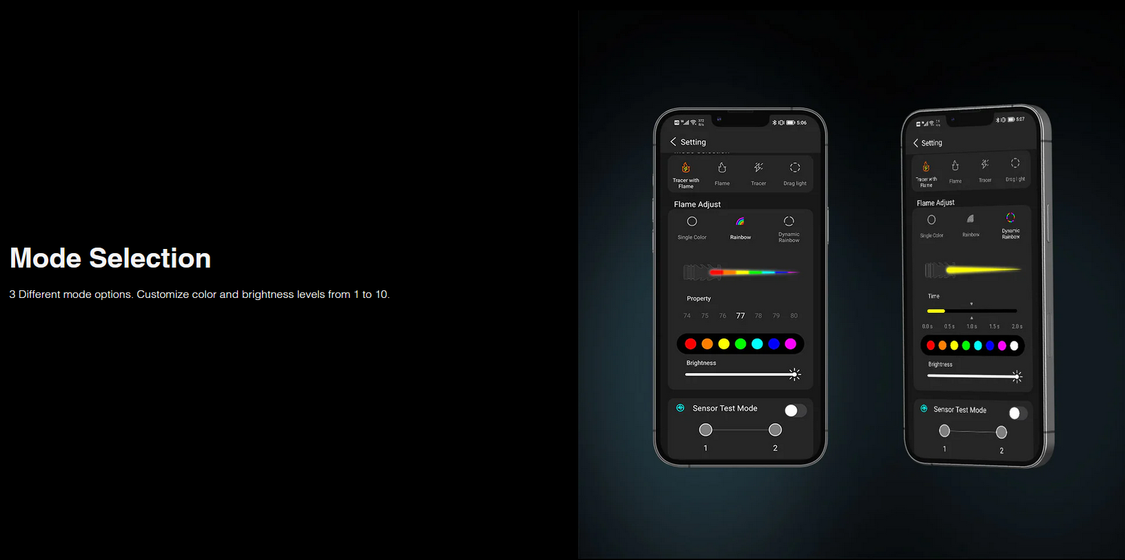 Profitez de 10 options de couleurs, dont Rouge, Vert, Cyan et même des modes dynamiques comme Arc-en-ciel ou Flamme.