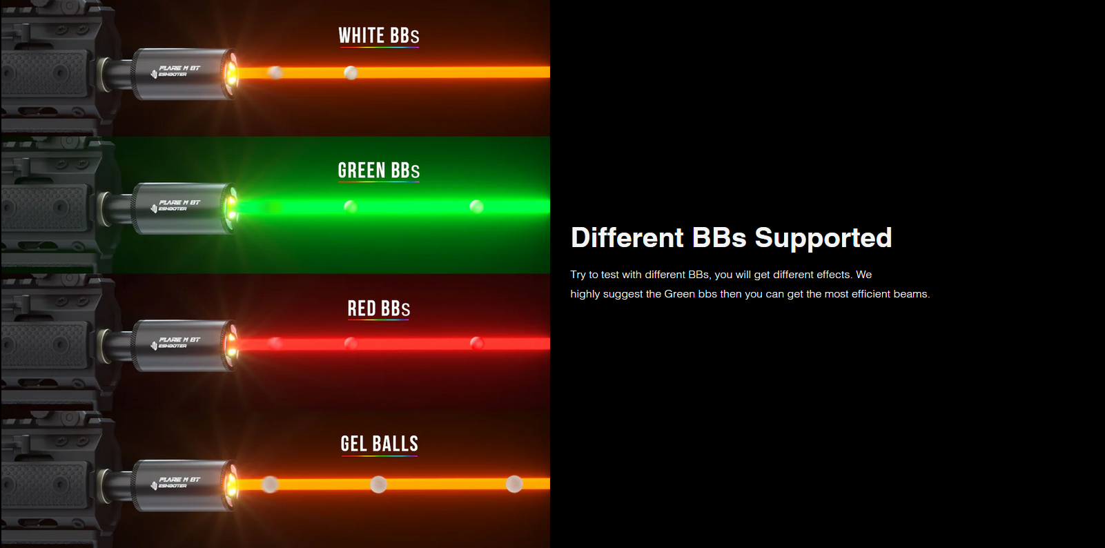 Compatibilité : BBs traceurs rouges/verts, billes standard et gel.