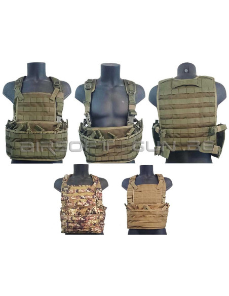 -Modèle Chest avec protection balistique sur l’avant. Même disposition que précédemment avec l’ajout d’une plaque de protection balistique de classe III ou IV sur l’avant du gilet.