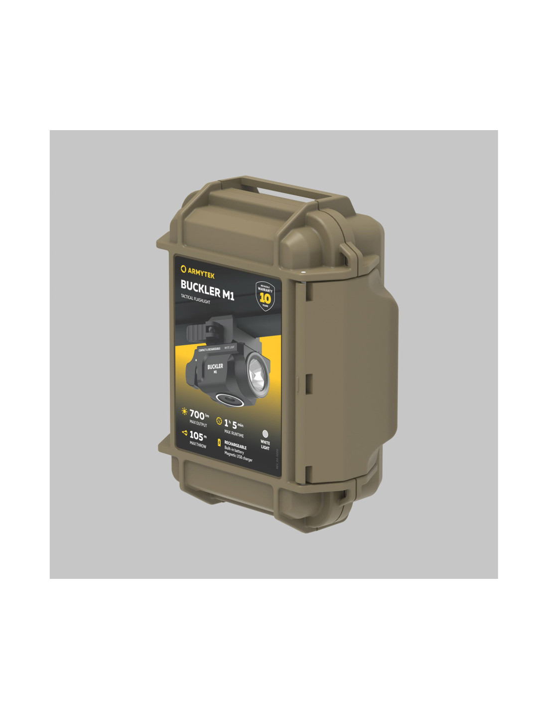 Avec ses interrupteurs ambidextres, ses performances lumineuses avancées et sa robustesse, la lampe tactique Armytek Buckler M1 est un allié incontournable pour les forces de l’ordre, la sécurité privée ou l’autodéfense. Elle est livrée dans une boîte renforcée, étanche, avec système d’attache pour ceinture ou gilet tactique.