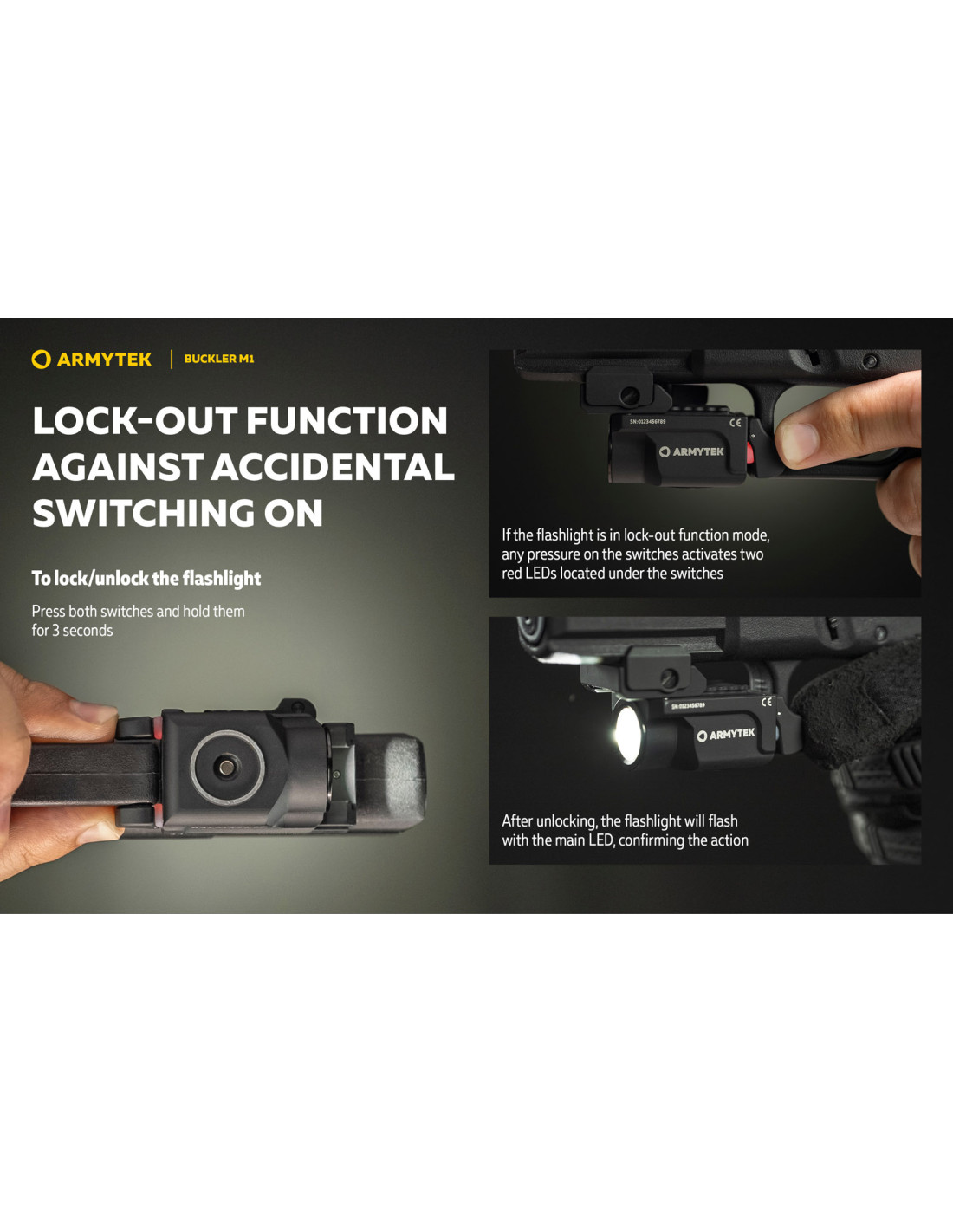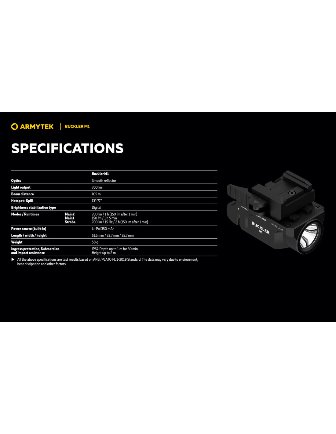 Lampe Tactique Armytek Buckler M1 pour Arme de Poing