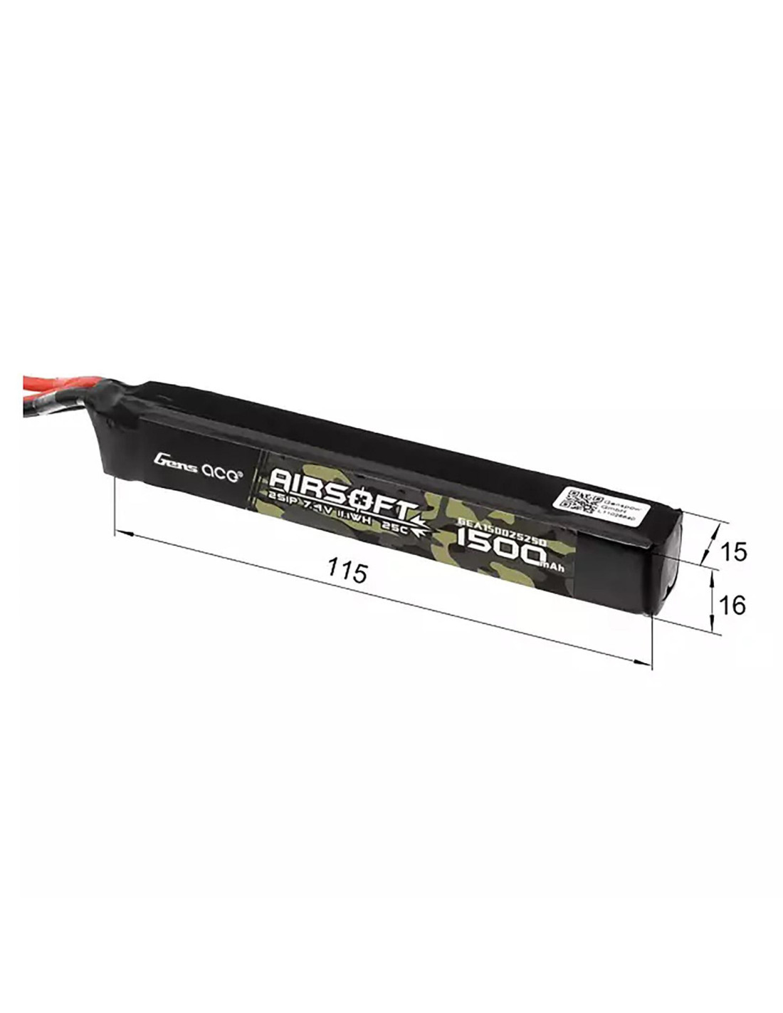La batterie Gens ace 25C 1500mAh 2S 7.4V Airsoft Gun Lipo avec connecteur Dean est spécialement conçue pour alimenter les AEG airsoft.