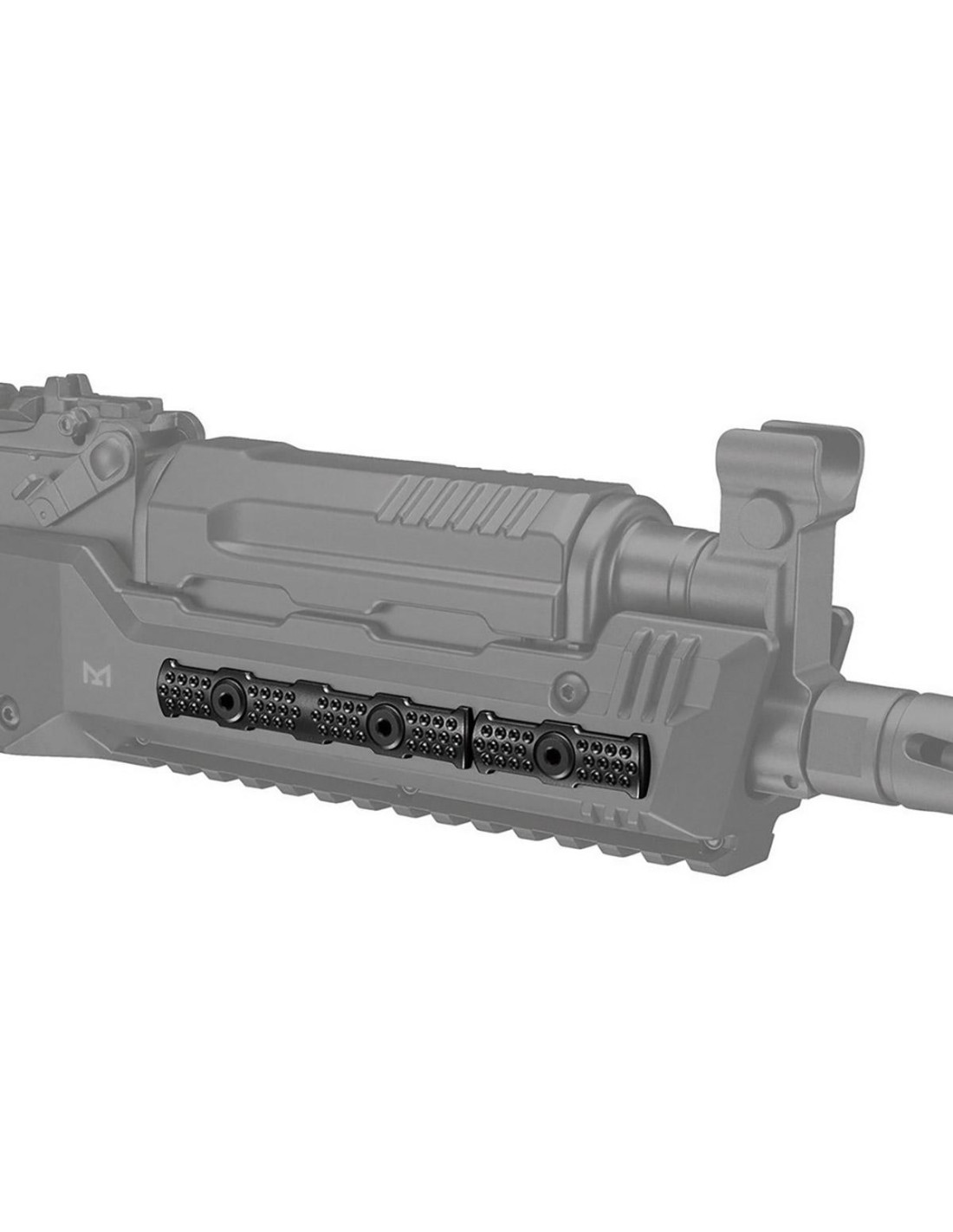 Les deux côtés du garde-main adopte le système de rails M-Lok et un rail picatinny est sur la partie inférieur.