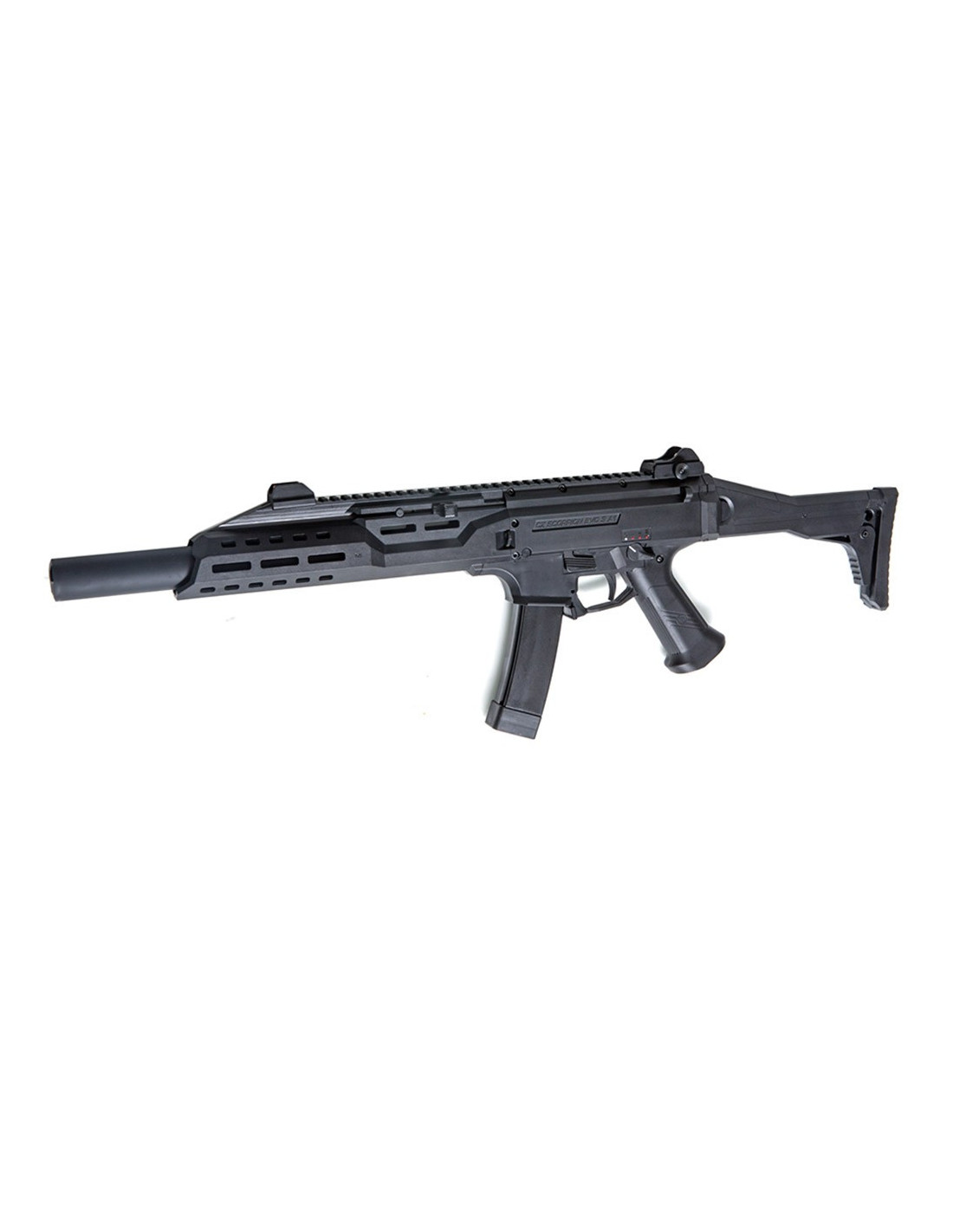 Les derniers modèles de la Réplique Scorpion EVO, tels que représentés ici, sont disponibles en version carabine équipée d'un silencieux.