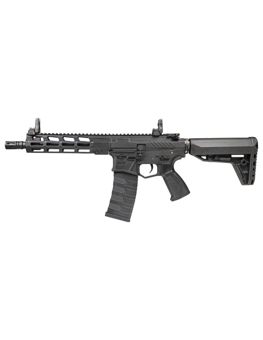 La réplique fusil d'assaut CM16 Batto AEG de G&G est conçue en nylon renforcé et fibre composite, offrant une structure légère mais extrêmement résistante sur le terrain. Elle est équipée de viseurs avant et arrière à double profil : relevés, ils permettent une visée traditionnelle, et repliés, ils utilisent des fibres optiques vertes pour un ciblage rapide même en faible luminosité. 👁️🗨️